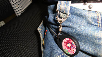 このホルダーに入れれば、鍵につけたり、ズボンに